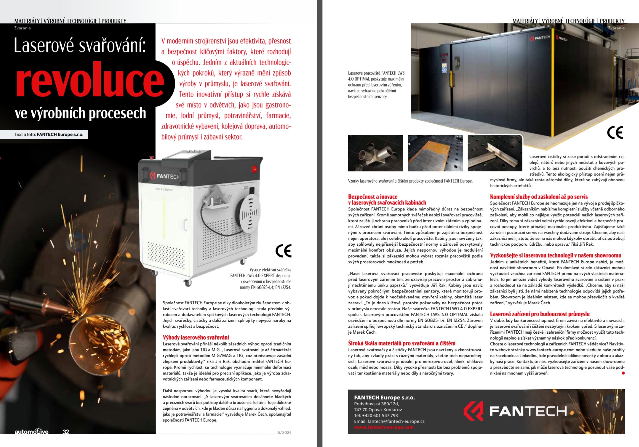Společnost FANTECH Europe se neomezuje jen na vývoj a prodej špičkových zařízení. „Zákazníkům nabízíme kompletní služby včetně odborného zaškolení, aby mohli co nejlépe využít potenciál našich laserových zařízení. Díky tomu si zákazníci velmi rychle osvoji efektivní a bezpečné pracovní postupy, které přinášejí maximální produktivitu. Zajišťujeme také záruční i pozáruční servis na všechny dodávané stroje. Chceme, aby naši zákazníci měli jistotu, že se na nás mohou kdykoliv obrátit, ať už potřebují technickou podporu, údržbu, nebo opravu,“ říká Jiří Rak.
